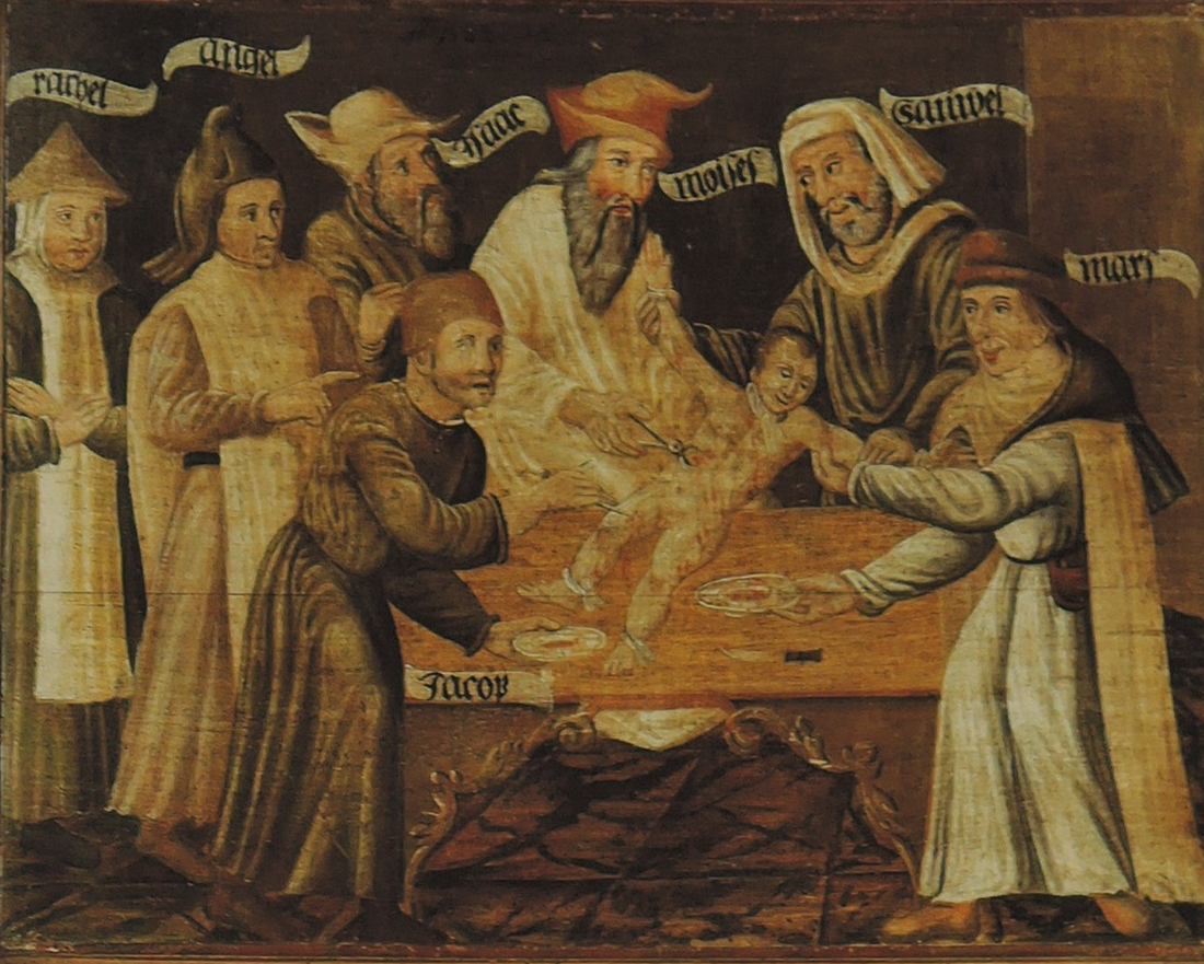 Ve středověku pokládala oficiální náboženská doktrína Židy za „vrahy Krista“ a „nepřátele křesťanství“. Tato negativní reprezentace Židů posléze pronikla do sekulárního prostředí a stala se součástí univerzální středověké kultury. Nadřazenost křesťanské víry se měla v právní rovině demonstrovat například povinností Židů nosit speciální klobouk (Judenhut), který se pak ahistoricky objevoval i ve středověkých vyobrazeních biblických scén (obr. 8–9). Středověké výtvarné umění stigmatizovalo Židy také pomocí motivů ošklivosti (např. „prasečí“ a „židovský“ nos, obr. 4), obscénnosti („židovská svině“, obr. 1, 3, 6), kriminálnosti (obr. 10), nebo dokonce sadismu (motiv rituální vraždy, obr. 2).