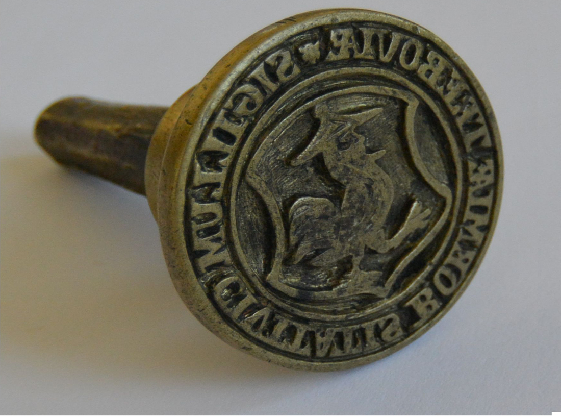 5. Znak města Česká Třebová s vyobrazením kohouta se židovskou hlavou užívaný od 16. století