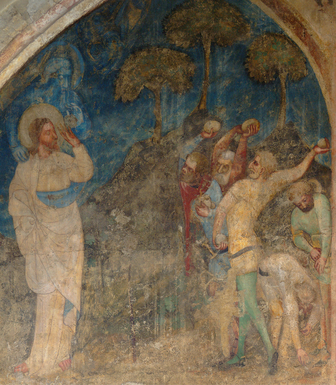 4. Ježíš kamenovaný Židy se zkarikovanými rysy